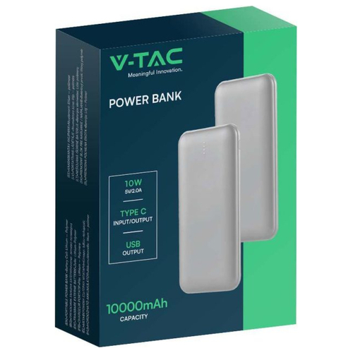 V-TAC PowerBank 10.000 mAh Ασημί 23035