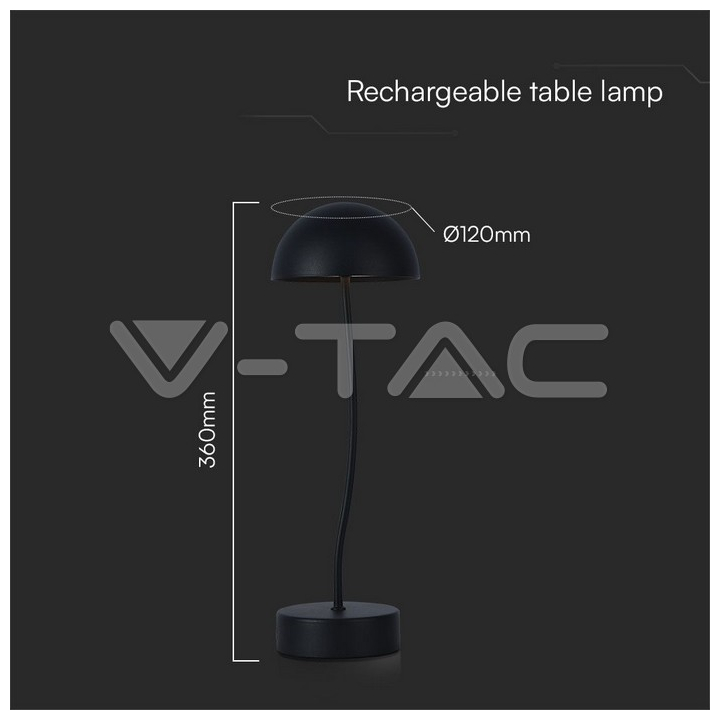 V-TAC LED Επιτραπέζιο Φωτιστικό 3000K Μαύρο Σώμα 3W
