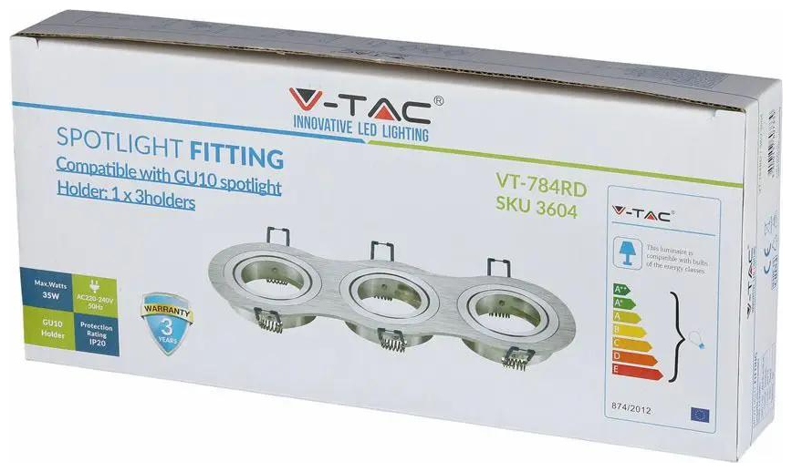 Βάση Σποτ GU10 Στρογγυλή Σατινέ Βουρτσισμένη 3 Θέσεων 255x91x25mm V-TAC 3604 Βάση: GU10 Υλικό: Αλουμίνιο Χρώμα: Σατινέ Βουρτσισμένη Σχήμα: Στρογγυλό Διατομή Κοπής: 235 x 75mm Διαστάσεις: 255 x 91 x 25mm