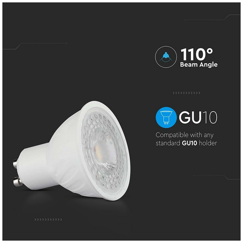 Το V-TAC Σποτ LED GU10 6W προσφέρει φωτεινή ροή 610 lumens με ψυχρό λευκό φως 6500K, δημιουργώντας μια καθαρή και ζωντανή ατμόσφαιρα. Η ευρεία γωνία δέσμης 110° εξασφαλίζει ομοιόμορφη κατανομή φωτός, ιδανική για χώρους όπως γραφεία, εμπορικά καταστήματα και μοντέρνες κατοικίες.
