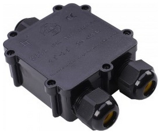 Αδιάβροχο κουτί 1 σε 2 Μαύρο με κλέμα για ακροδέκτες για σύνδεση προβολέων 8-12mm IP68