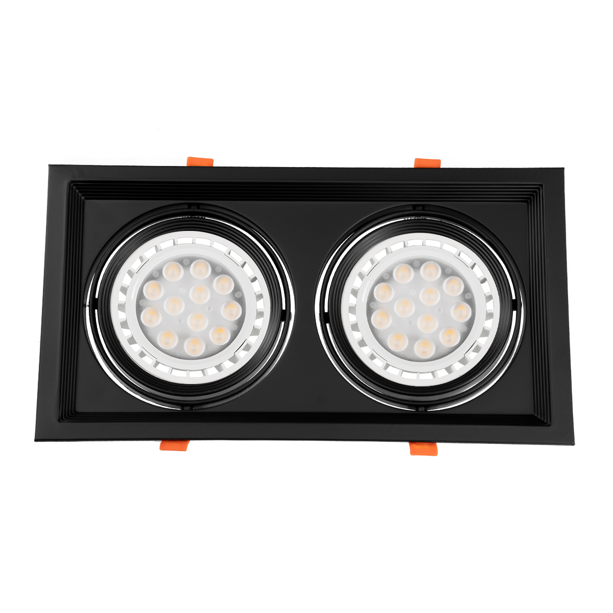 GloboStar® VITA 77855 Χωνευτό Κινούμενο Διπλό Τετράγωνο Σποτ Οροφής για Λάμπα AR111 - IP20 - Χυτό Αλουμίνιο - M33.5 x Π17.5 x Y5.5cm - Μαύρο - 5 Χρόνια Εγγύηση