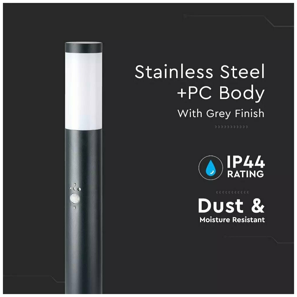 V-TAC Επιδαπέδιο Φωτιστικό Κήπου Κολωνάκι E27 60cm 100° Στρογγυλό Αδιάβροχο IP44 με Αισθητήρα Κίνησης και 2 Πρίζες Ανοξείδωτο Ατσάλι Γκρι Σώμα 8976