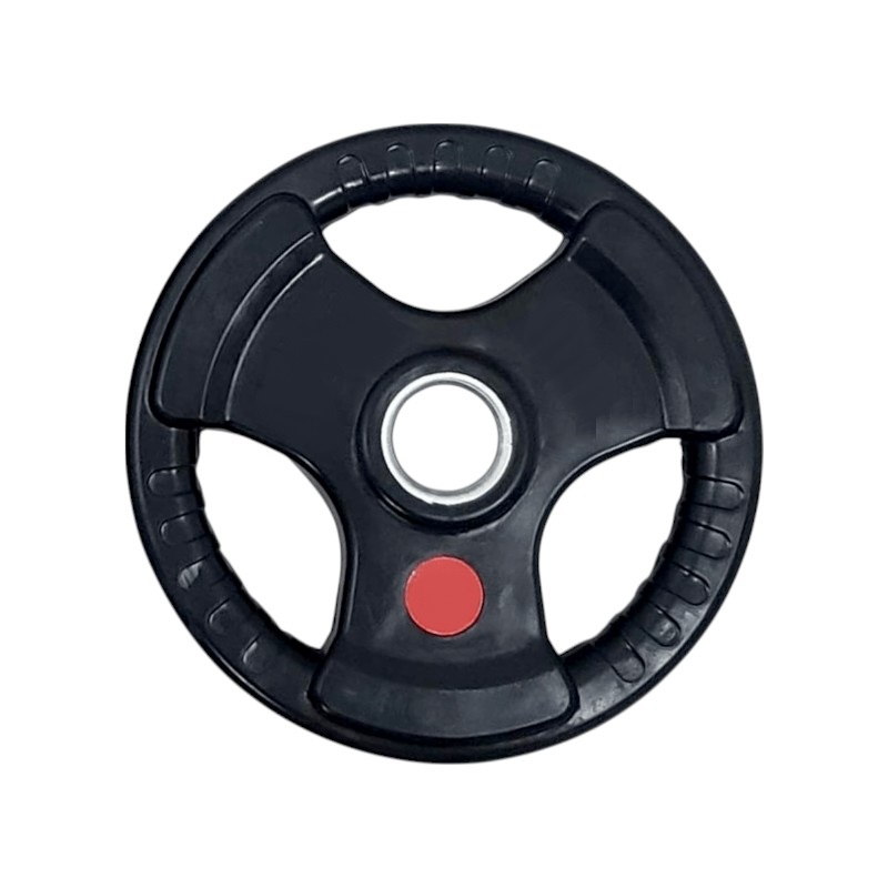 Δίσκος-πιάτο βάρους γυμναστικής με ελαστική αντιολισθητική επένδυση και εργονομικές λαβές, ιδανικό για χρήση πάνω σε μπάρα άρσης ή ως ελεύθερο βάρος σε πολλαπλές ασκήσεις.