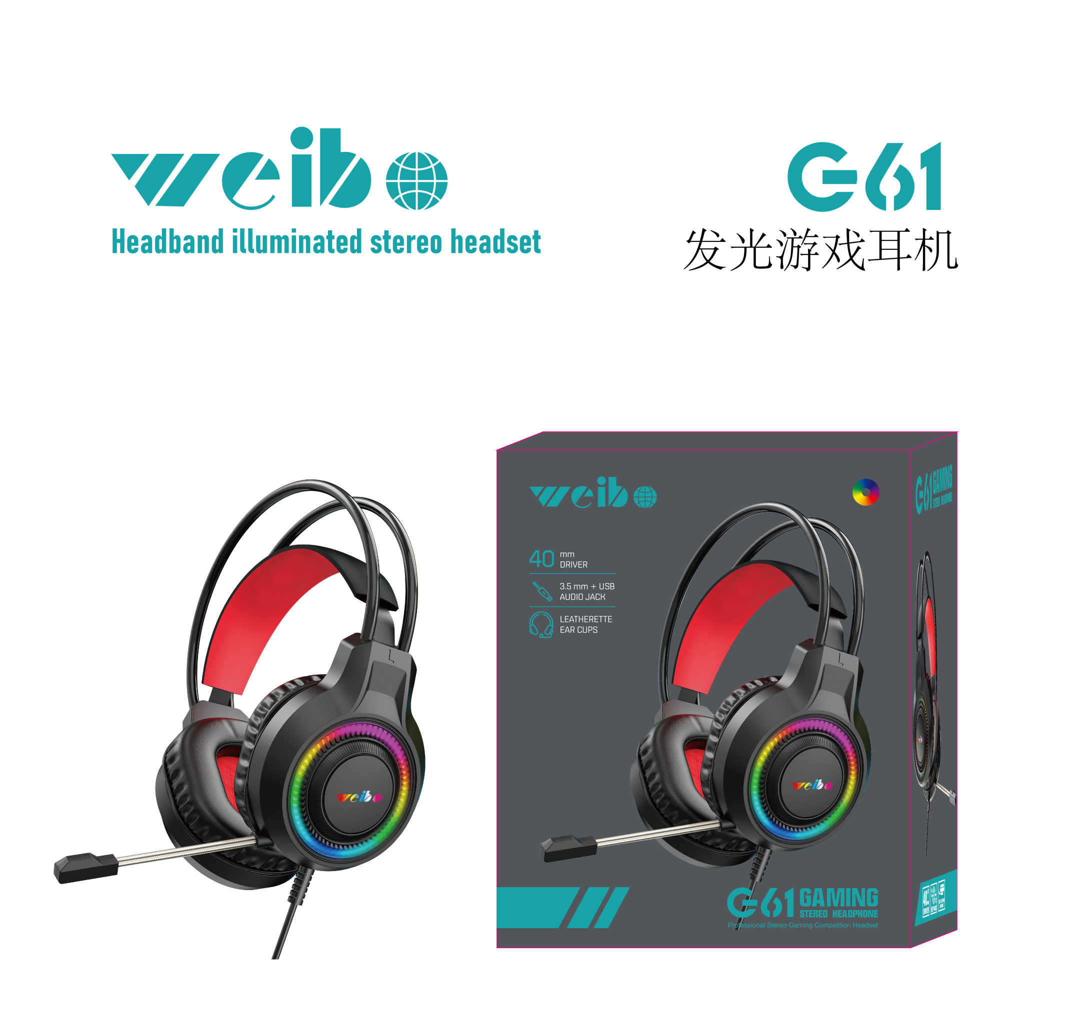 Ενσύρματα ακουστικά Gaming - LED RGB - G61 - Weibo - 658502