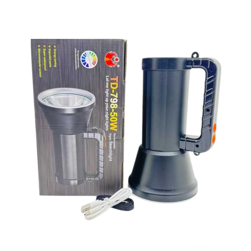 Επαναφορτιζόμενος πολυλειτουργικός φακός χειρός, υψηλής απόδοσης, με ενσωματωμένο ηλιακό πάνελ φόρτισης που προσφέρει έξτρα αυτονομία μπαταρίας.