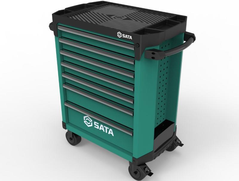 Εργαλειοφοριαμός με 7 συρτάρια. Το σύστημα ασφαλείας επιτρέπει ενα συρτάρι την φορά να είναι ανοιχτό. Τα συρτάρια δεν ανοίγουν ενώ το καρότσι βρίσκεται σε κίνηση. Συρτάρια πλήρως ανοικτά (100%). Ενισχυμένη επιφάνεια εργασίας ABS με στρογγυλεμένες άκρες κ