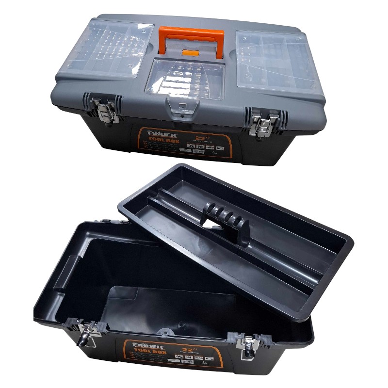 Πλαστική εργαλειοθήκη Finder μεγέθους 22'' με πολλαπλές θήκες αποθήκευσης και διαχωριστικά.