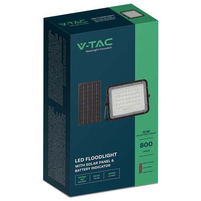 V-TAC Ηλιακός Προβολέας LED 10W Φυσικό Λευκό 4000K με αντικαταστάσιμη μπαταρία και χειριστήριο