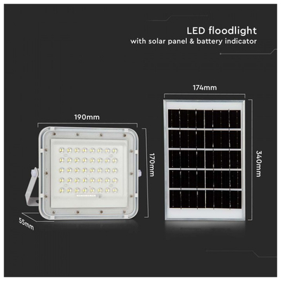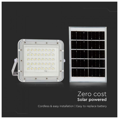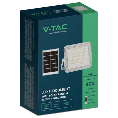 V-TAC Ηλιακός Προβολέας LED 6W 400lm IP65 με Χειριστήριο & αντικαταστάσιμη μπαταρία Άσπρο Σώμα Ψυχρό Λευκό 7839