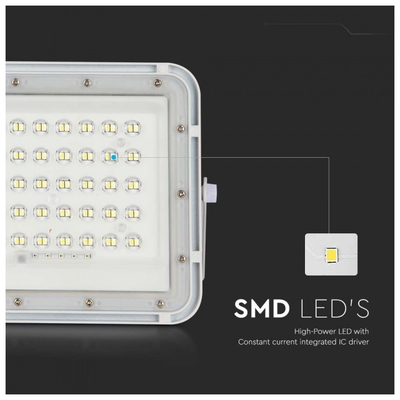 V-TAC Ηλιακός Προβολέας LED 10W 800lm IP65 με Χειριστήριο & αντικαταστάσιμη μπαταρία Άσπρο Σώμα Ψυχρό Λευκό 7841