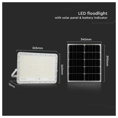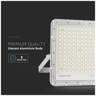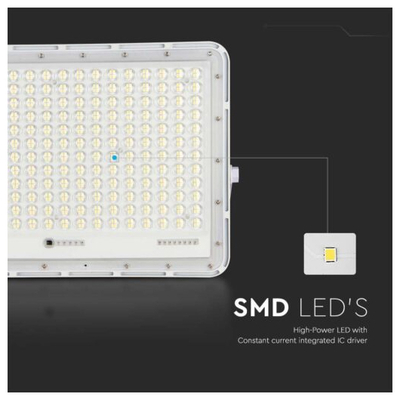 V-TAC Ηλιακός Προβολέας LED 300W 4200lm 120° IP65 με Χειριστήριο Άσπρο Σώμα Ψυχρό Λευκό 10416