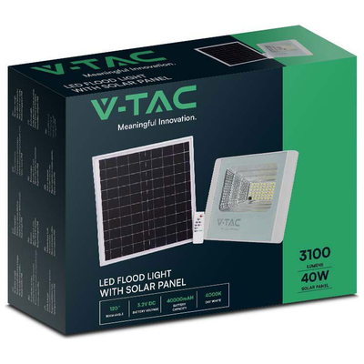 V-TAC Ηλιακός Προβολέας LED 200W 3100lm 120° IP65 με Χειριστήριο Άσπρο Σώμα Ψυχρό Λευκό 10414