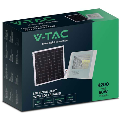 V-TAC Ηλιακός Προβολέας LED 200W 3100lm 120° IP65 με Χειριστήριο Άσπρο Σώμα Φυσικό Λευκό 10413