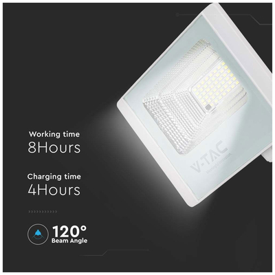 V-TAC Ηλιακός Προβολέας LED 300W 4200lm 120° IP65 με Χειριστήριο Άσπρο Σώμα Φυσικό Λευκό 10415
