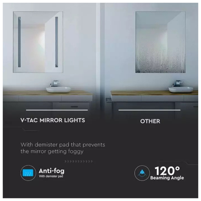 V-TAC 40451 Ορθογώνιος Καθρέπτης Μπάνιου Led από Μέταλλο 50x70cm