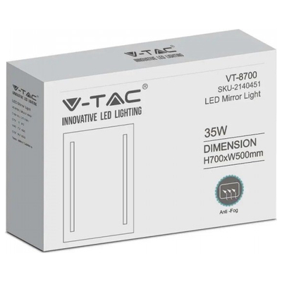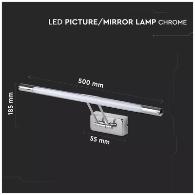 Φωτιστικό V-TAC Πίνακα Καθρέπτη 8W Χρώμιο Θερμό Λευκό 50cm 3985