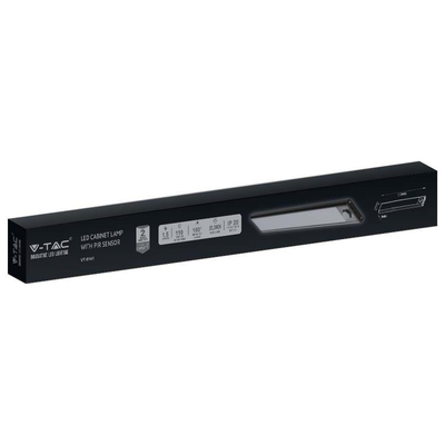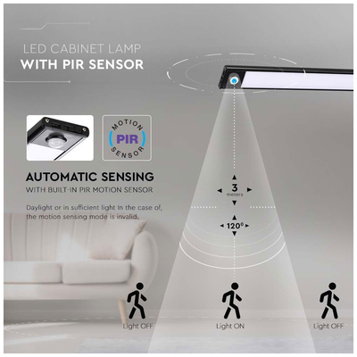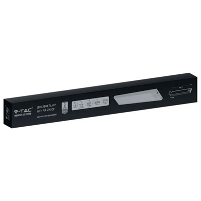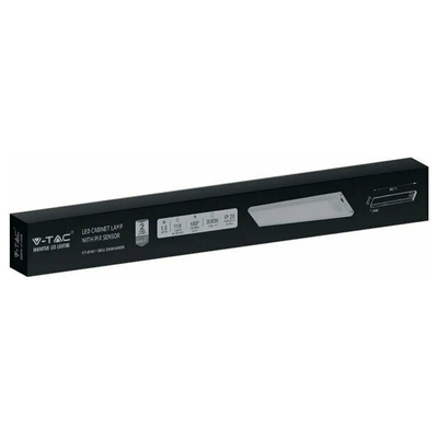 V-TAC Επαναφορτιζόμενο Φωτιστικό Ντουλάπας LED με Αισθητήρα Κίνησης PIR 1.5W 110lm 180° IP20 30cm Ζεστό Λευκό Μαύρο Σώμα 2960