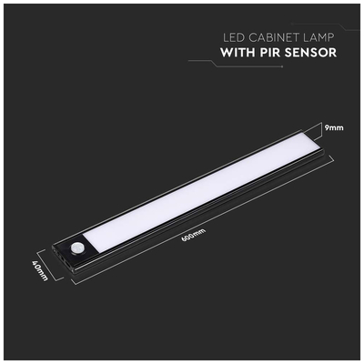 V-TAC Επαναφορτιζόμενο Φωτιστικό Ντουλάπας LED με Αισθητήρα Κίνησης PIR 2.5W 260lm 180° IP20 60cm Φυσικό Λευκό Μαύρο Σώμα 2967