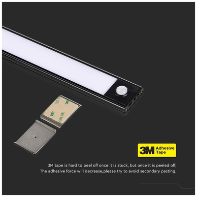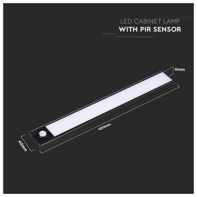 V-TAC Επαναφορτιζόμενο Φωτιστικό Ντουλάπας LED με Αισθητήρα Κίνησης PIR 2W 160lm 180° IP20 40cm Ζεστό Λευκό Μαύρο Σώμα 2964