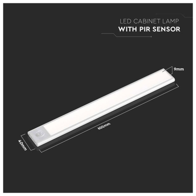 V-TAC Επαναφορτιζόμενο Φωτιστικό Ντουλάπας LED με Αισθητήρα Κίνησης PIR 2.5W 260lm 180° IP20 60cm Φυσικό Λευκό Ασημί Σώμα 2966