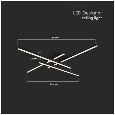 V-TAC Φωτιστικό LED Οροφής 38W 230V 360° 4100lm IP20 880x105mm Ζεστό Λευκό Μαύρο Σώμα 14994