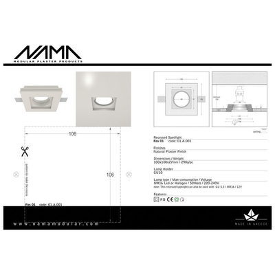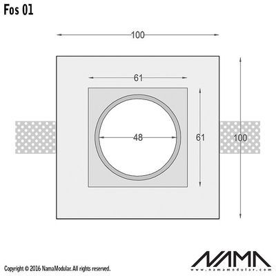 Γύψινη Χωνευτή Βάση Τετράγωνη για Σποτ GU10 Fos 01