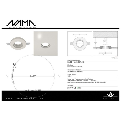 Γύψινη Χωνευτή Βάση Στρογγυλή για Σποτ GU10 Fos 02