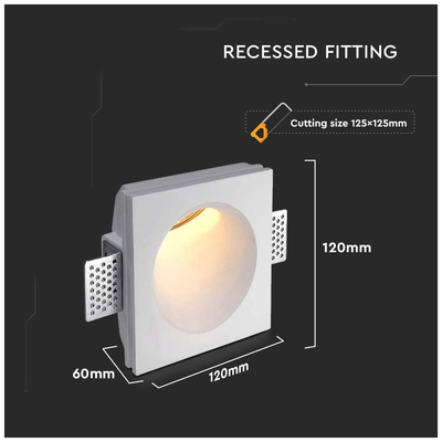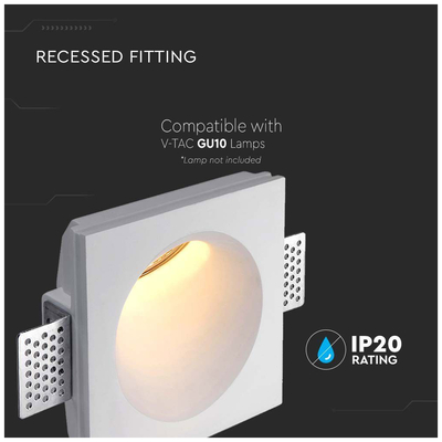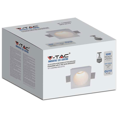 V-TAC Γύψινο Επιτοίχιο Χωνευτό Φωτιστικό για GU10 LED Τετράγωνο Άσπρο 6772