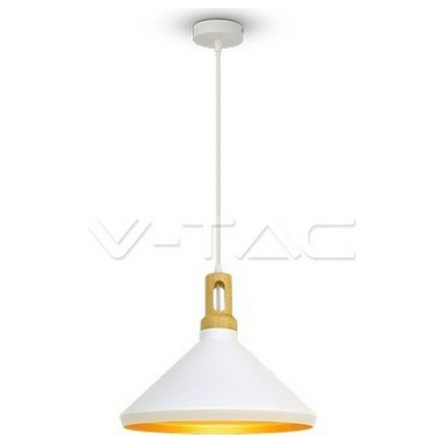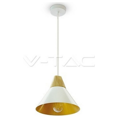 Κρεμαστό Φωτιστικό V-TAC Μεταλλικό Κωνική Καμπάνα Λευκό με Ξύλινη Βάση και ντουί Ε27 Φ350mm 3763