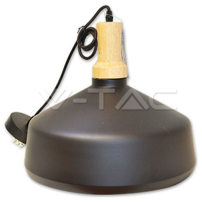 Κρεμαστό Φωτιστικό V-TAC Μεταλλικό Μεγάλο Καπέλο Μαύρο με Ξύλινη Βάση και ντουί Ε27 Φ350 3766