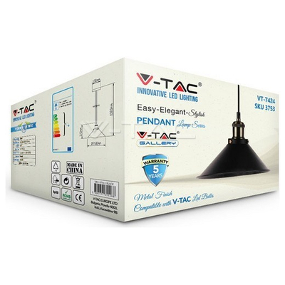 Κρεμαστό Φωτιστικό Vintage V-TAC Αλουμίνιο Μαύρο με ντουί Ε27 3728