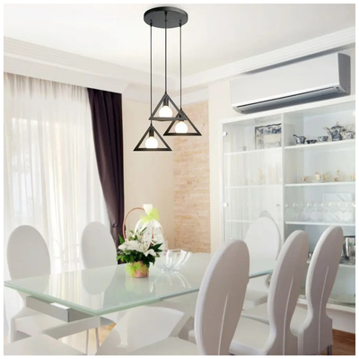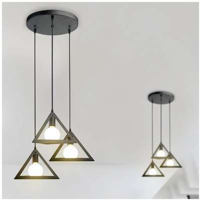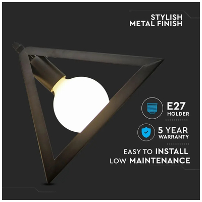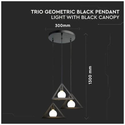 Κρεμαστό Φωτιστικό Μεταλλικό V-TAC Τρίφωτο Σχήμα Πυραμίδας Μαύρο Ματ και 3 ντουί Ε27 3927