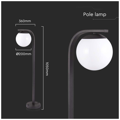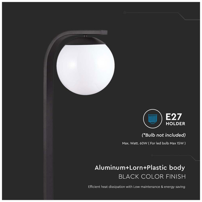 V-TAC Φωτιστικό Κήπου Στύλος E27 Στρογγυλό Μαύρο Ματ 10421