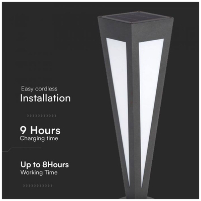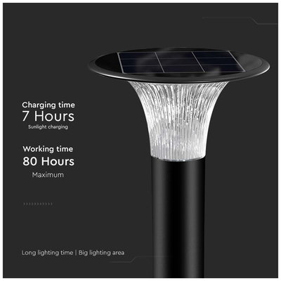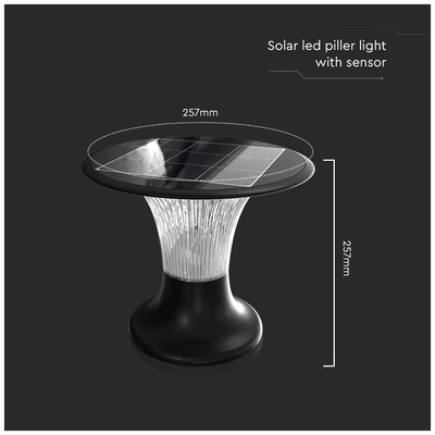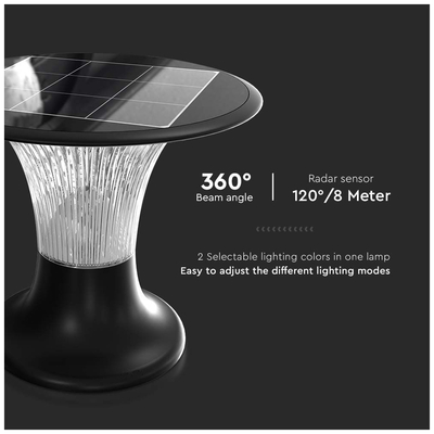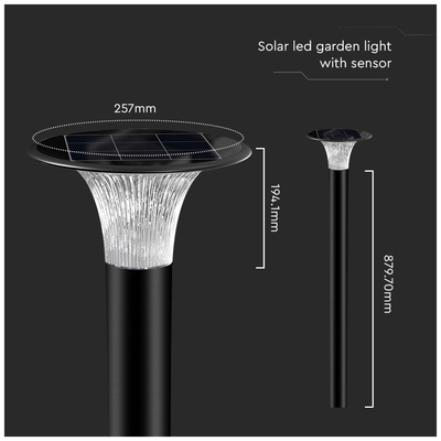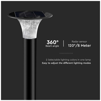 V-TAC LED ηλιακό φωτιστικό δαπέδου κολωνάκι 15W 4000K+6000K με μαύρο σώμα και ανιχνευτή SKU 23006