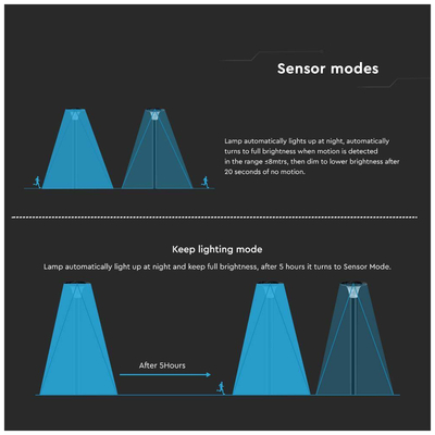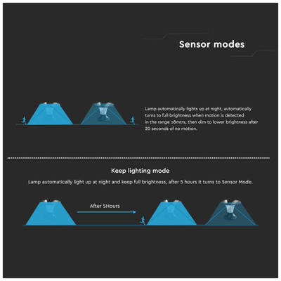 V-TAC LED ηλιακό φωτιστικό δαπέδου 15W 4000K+6000K με μαύρο σώμα και ανιχνευτή SKU23005
