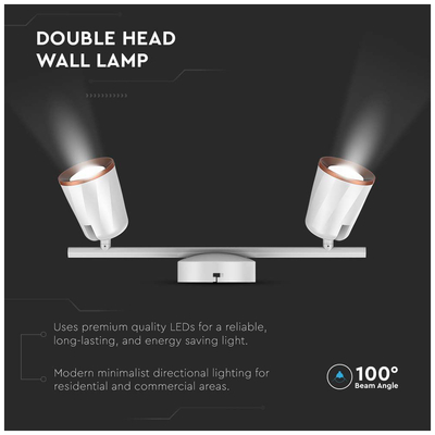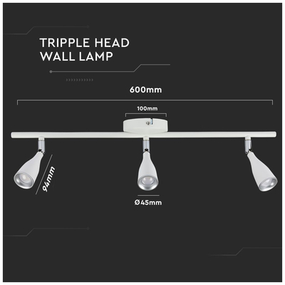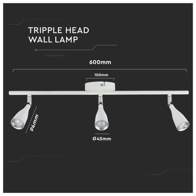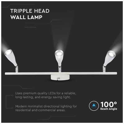 V-TAC Επιτοίχιο Φωτιστικό LED Τριπλό 13.5W 230V 100° 1260lm IP20 Ρυθμιζόμενο Ζεστό Λευκό Άσπρο Σώμα 218270