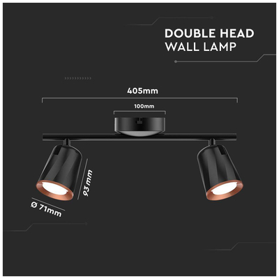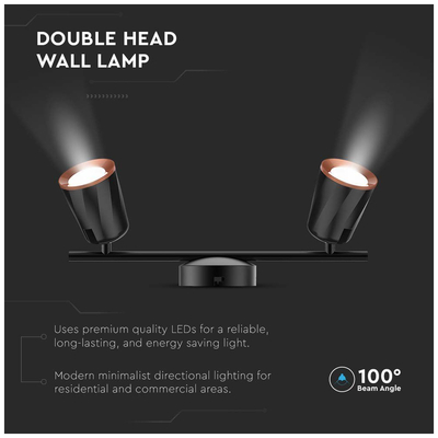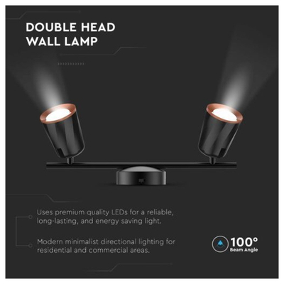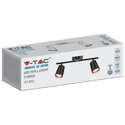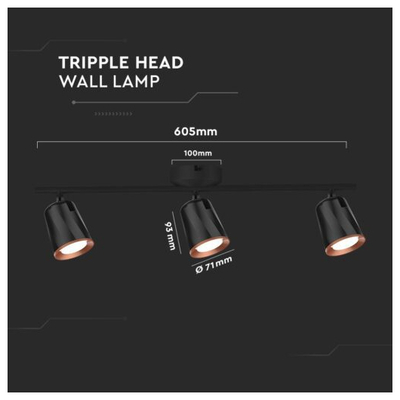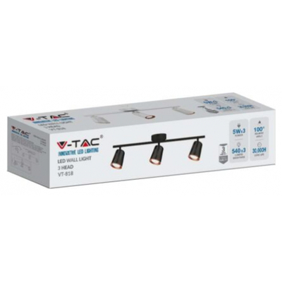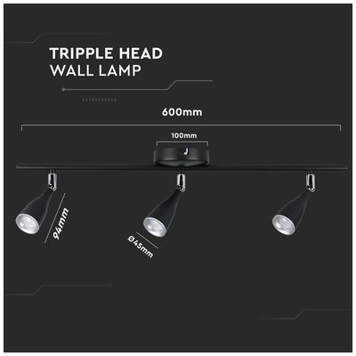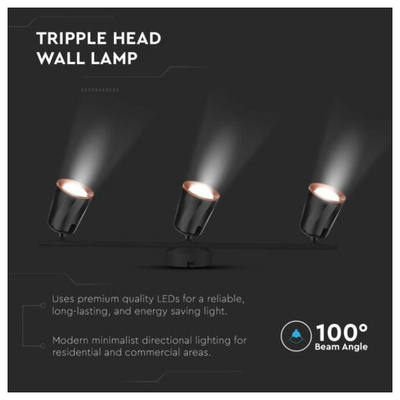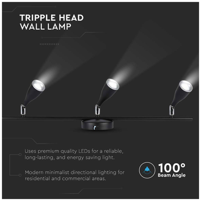 V-TAC Επιτοίχιο Φωτιστικό LED Τριπλό 13.5W 230V 100° 1260lm IP20 Ρυθμιζόμενο Ζεστό Λευκό Μαύρο Σώμα 218271