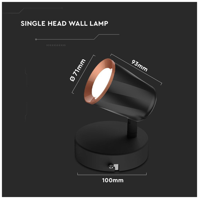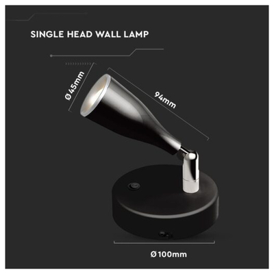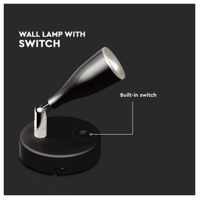 V-TAC LED επιτοίχιο φωτιστικό 4.5W 4000K φυσικό λευκό με μαύρο σώμα και διακόπτη SKU: 218678
