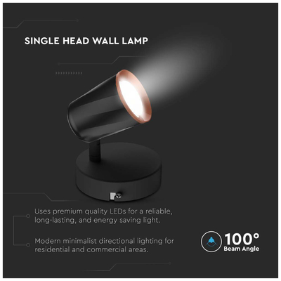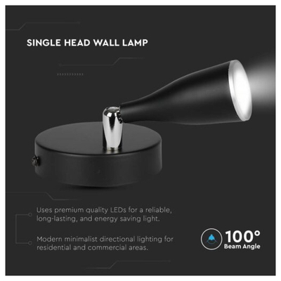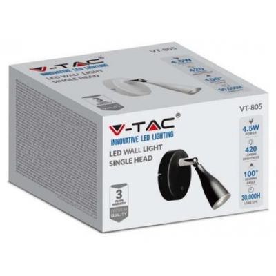 V-TAC Επιτοίχιο Φωτιστικό LED 5W 230V 100° 540lm IP20 Μαύρο Σώμα Φυσικό Λευκό 218253