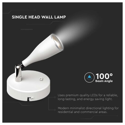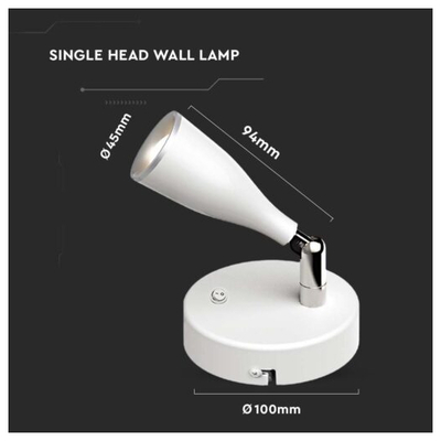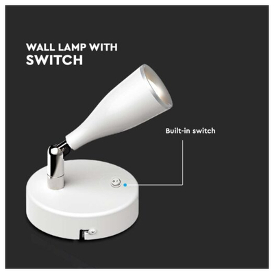 V-TAC LED επιτοίχιο φωτιστικό 4.5W 3000K θερμό λευκό με λευκό σώμα και διακόπτη SKU: 218675