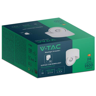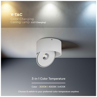 V-TAC Σπoτ Οροφής Με Κινούμενη Κεφαλή LED COB 28W 2500lm 25° IP20 Ø180mm Στρογγυλό CCT 3σε1 Λευκό Σώμα 23157