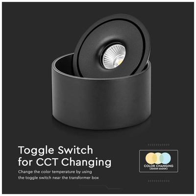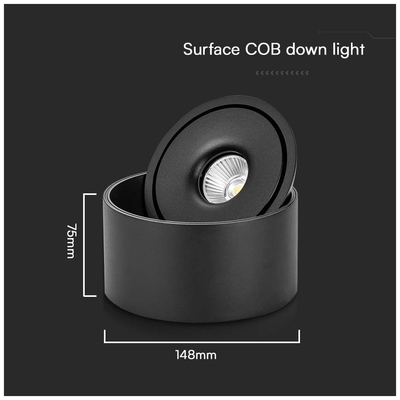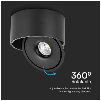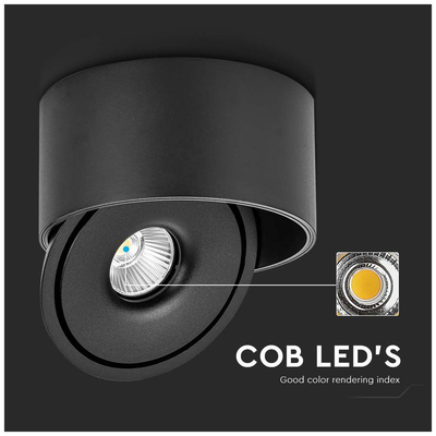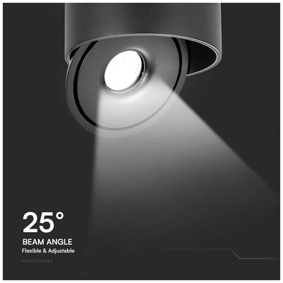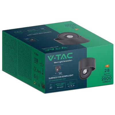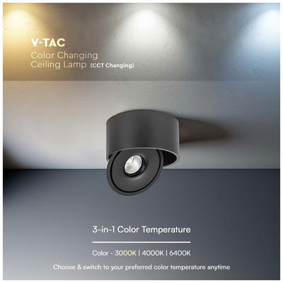 V-TAC Σπoτ Οροφής Με Κινούμενη Κεφαλή LED COB 28W 2500lm 25° IP20 Ø180mm Στρογγυλό CCT 3σε1 Μαύρο Σώμα 23158