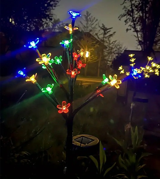 Φωτιζόμενα διακοσμητικά κλαδιά με λουλούδια LED με ηλιακό πάνελ φόρτισης και ενσωματωμένη επαναφορτιζόμενη μπαταρία, ιδανικά διακοσμητικά για χρήση σε σημεία που δεν έχουν εύκολη πρόσβαση σε ηλεκτρικό ρεύμα, καθώς τοποθετούνται και χρησιμοποιούνται εξολοκλήρου ασύρματα.