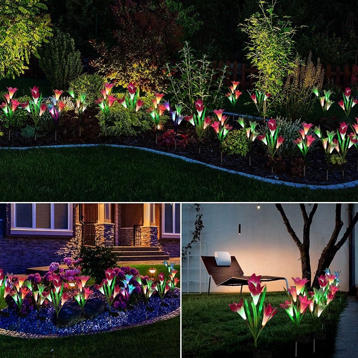 Φωτιζόμενα διακοσμητικά λουλούδια LED με ηλιακό πάνελ φόρτισης και ενσωματωμένη επαναφορτιζόμενη μπαταρία, ιδανικά διακοσμητικά για χρήση σε σημεία που δεν έχουν εύκολη πρόσβαση σε ηλεκτρικό ρεύμα, καθώς τοποθετούνται και χρησιμοποιούνται εξολοκλήρου ασύρματα.