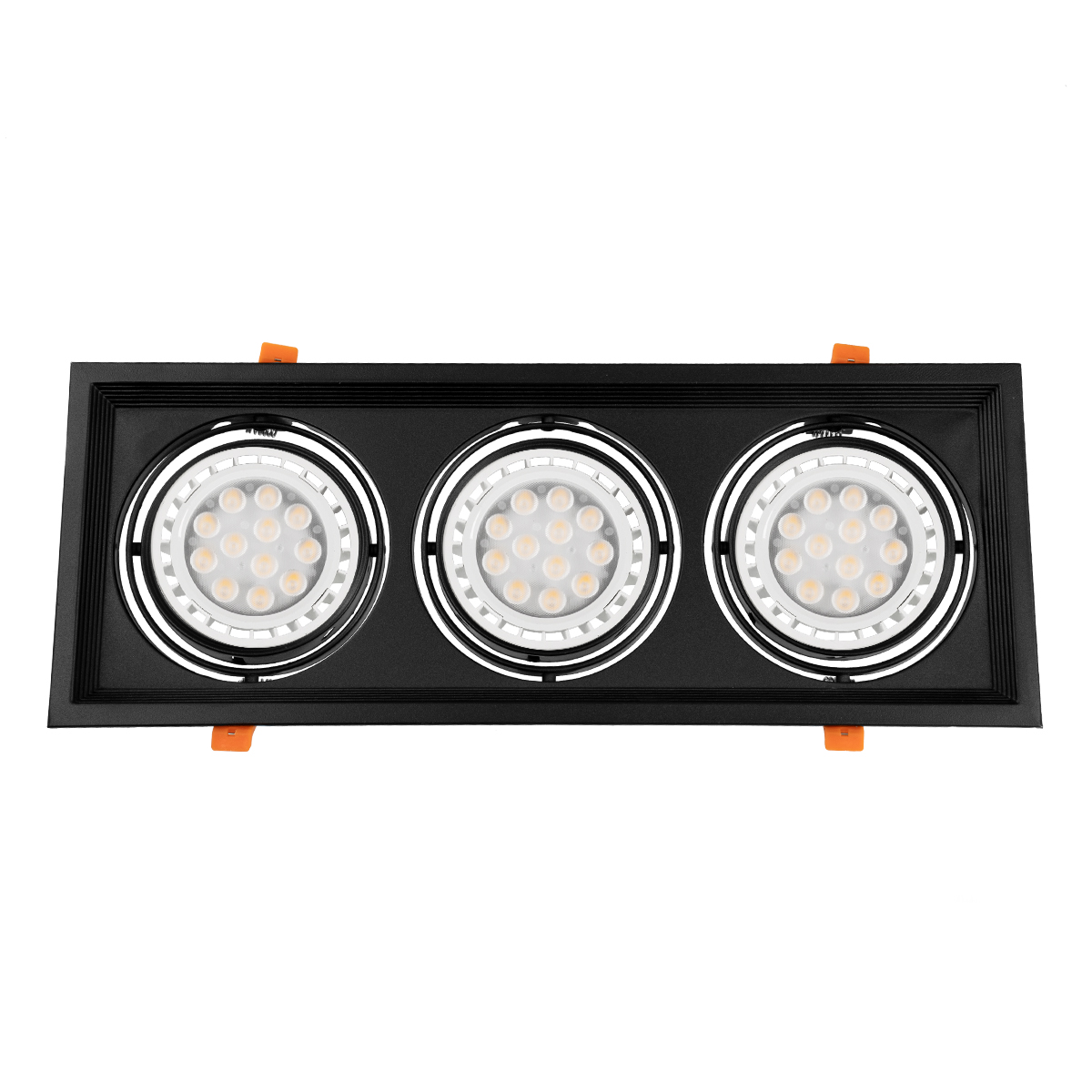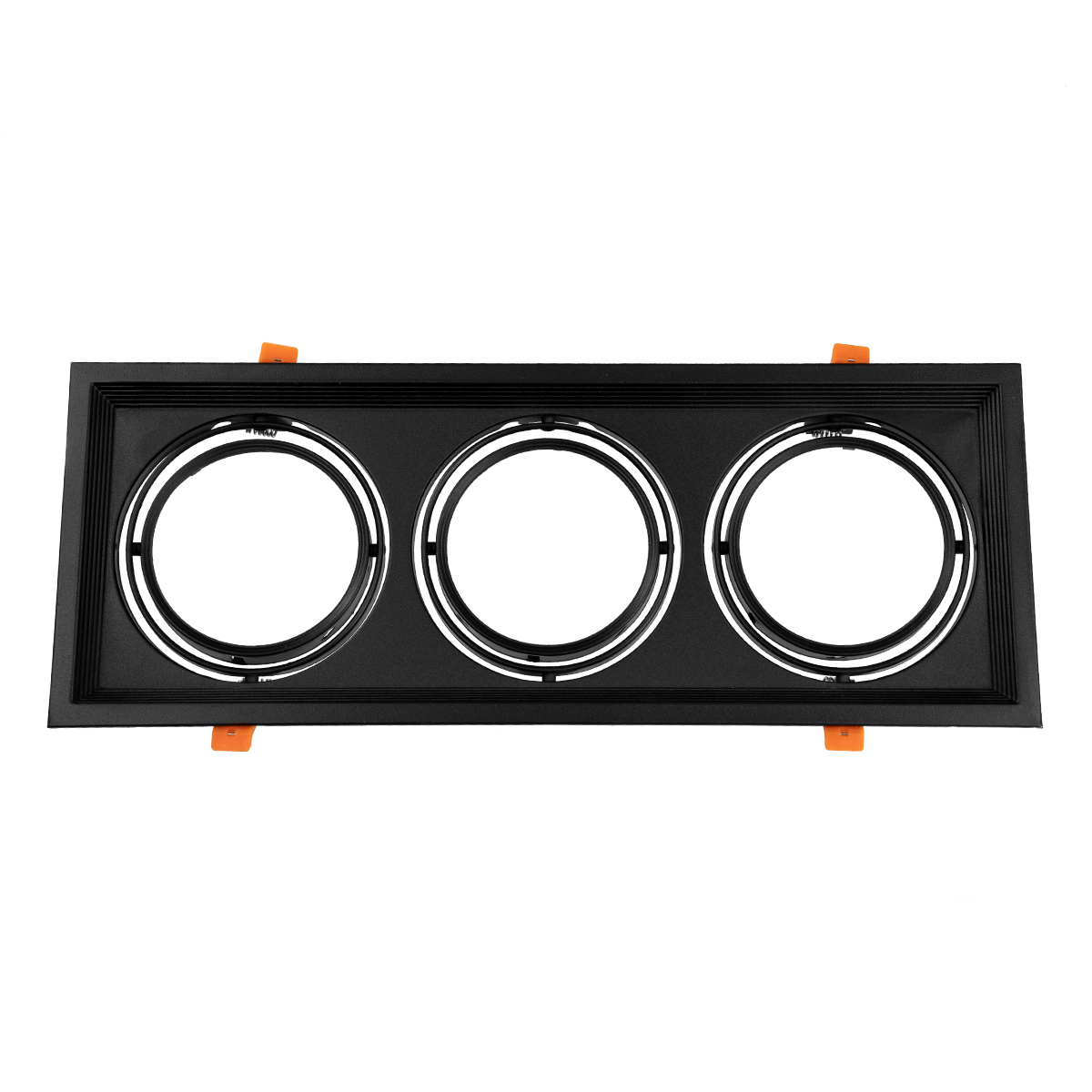 GloboStar® VITA 77857 Χωνευτό Κινούμενο Τριπλο Τετράγωνο Σποτ Οροφής για Λάμπα AR111 - IP20 - Χυτό Αλουμίνιο - M48.7 x Π18.7 x Y5.5cm - Μαύρο - 5 Χρόνια Εγγύηση