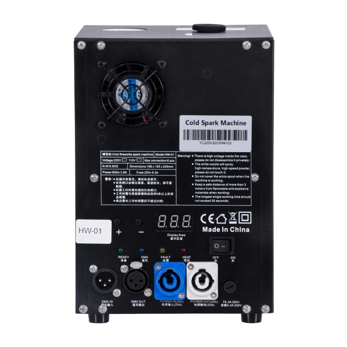 GloboStar® 51148 SIRENS Επαγγελματική Επιδαπέδια Μηχανή Cold Sparkle Machine - Fountain Εφέ με Άκαυστες Σπίθες 600W AC 220V-240V DMX512 Display on Body - Μαύρο - L18 x W16.5 x H24cm