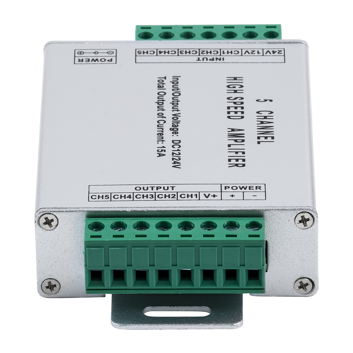 GloboStar® 73395 High Speed LED Amplifier 5 Channels - Ενισχυτής Σήματος Υψηλών Ταχυτήτων LED 5 Καναλιών DC 12-24V RGBW+WW Max 360W Μ10.5 x Π6.3 x Υ2.3cm