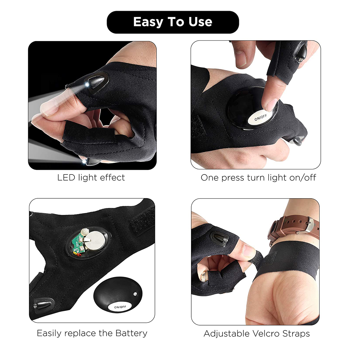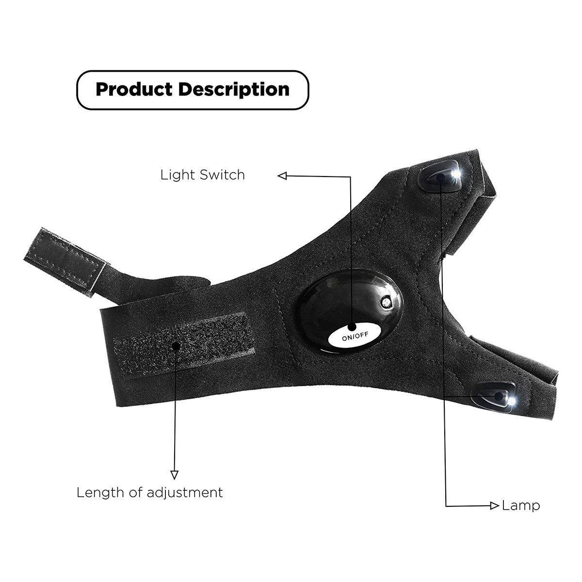 GLOBOSTAR® HANDLAMP 79067 Φακός Γάντι Χεριού LED 1W 100lm 60° DC 3V με 1xCR2016 Μπαταρία Αδιάβροχο IP44 Ψυχρό Λευκό 6000K - Μ33 x Π13.5 x Υ1cm - 1 Χρόνο Εγγύηση