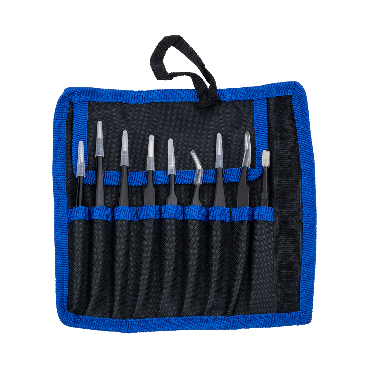GloboStar® 79997 Επαγγελματικό Mini Σετ Λαβίδων - Τσιμπίδων - Tweezers 9 Τεμαχίων σε 1 DIY Tool Kit Υψηλής Αντοχής Stainless Steel Μαύρο Μ19 x Π2.5 x Υ19cm
